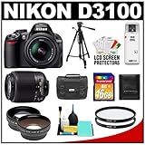 Nikon D3100 Digital SLR Camera & 18-55mm G VR DX AF-S Zoom Lens with 55-200mm DX Lens + 16GB Card + .45x Wide Angle & 2x Telephoto Lenses + (2) Filters + Tripod + Accessory Kit